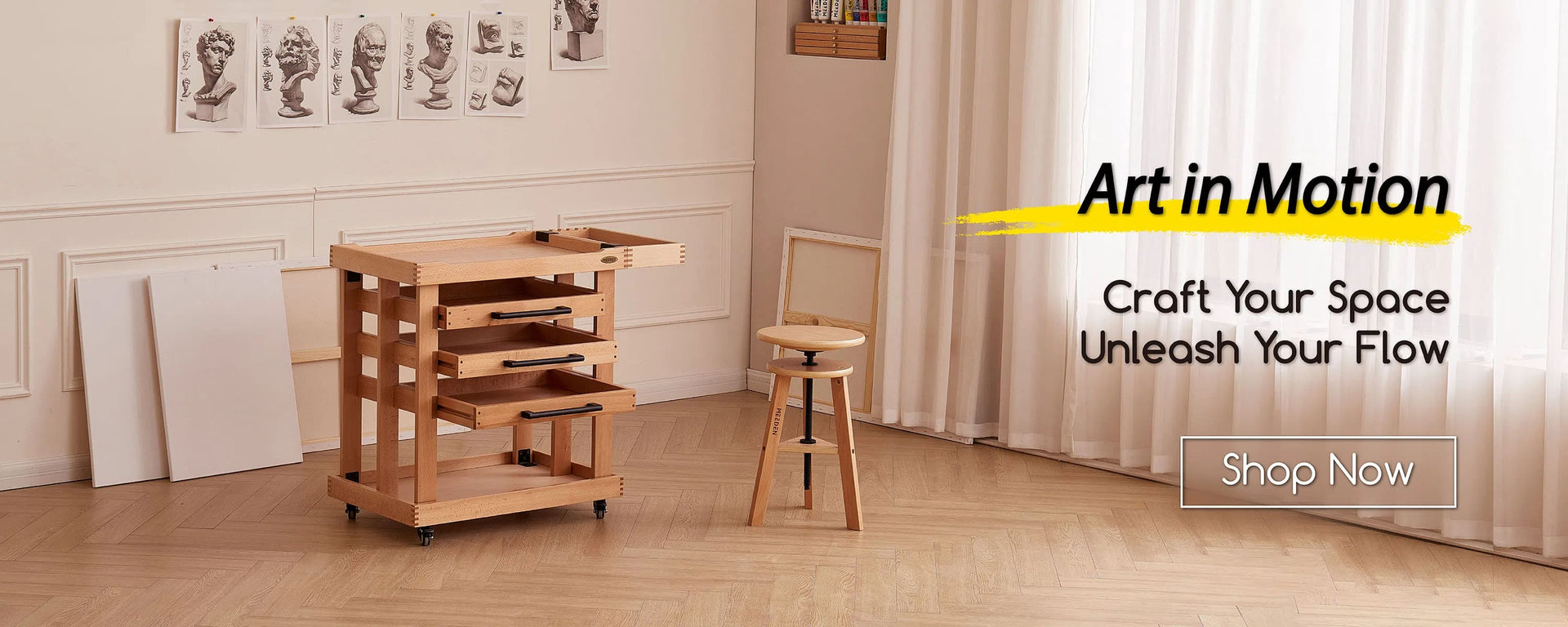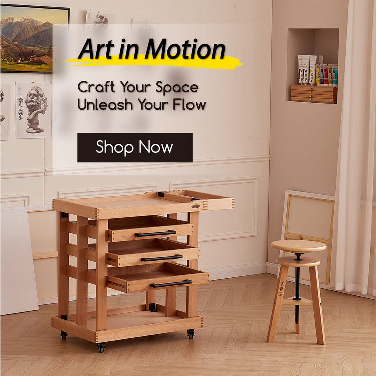 MEEDEN Artist Taboret Rolling Cart with Adjustable Desktop