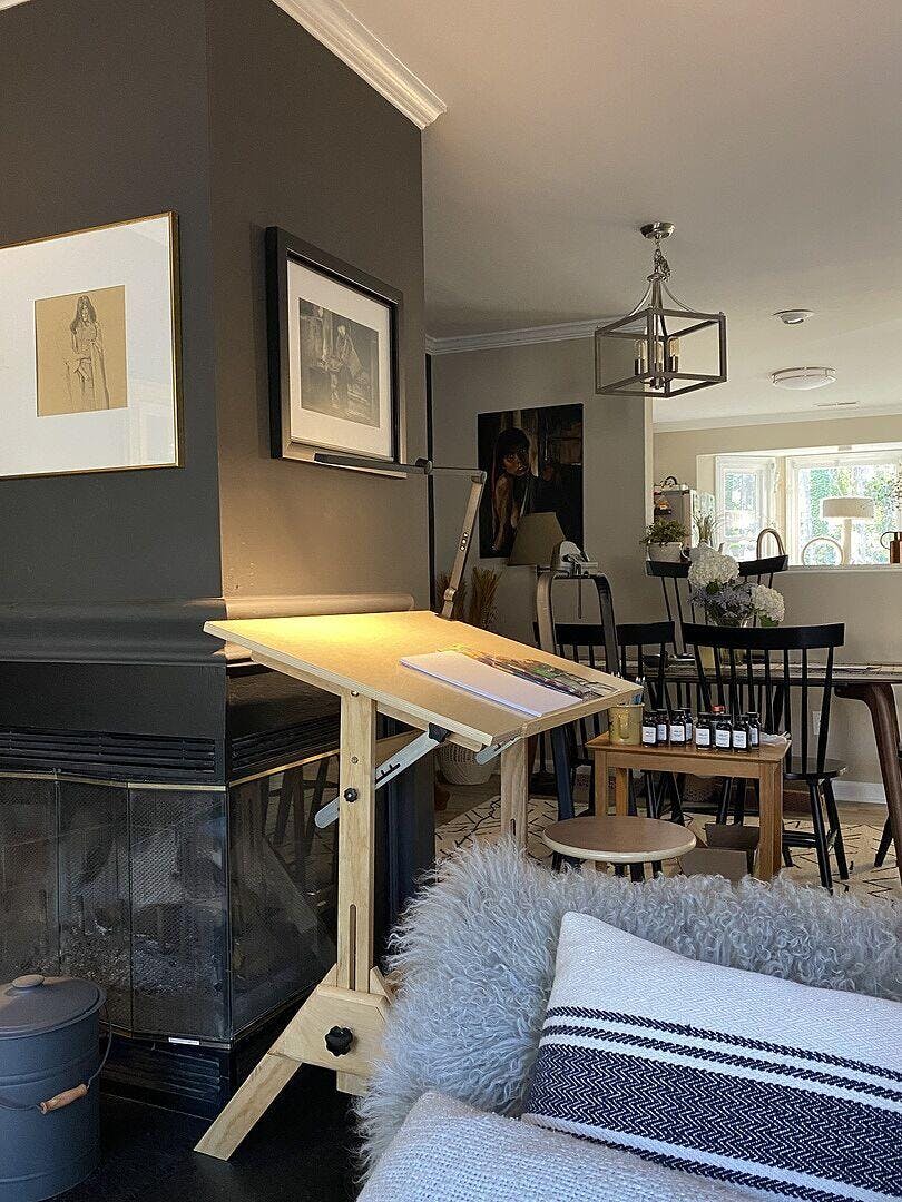 Tämä piirustuspöytä sisältää 23½” syvän x 35½” leveän pöytätason valmistettuna E0-luokan LSB-materiaalista (laminoitu lastulevy)— ympäristöystävällisestä materiaalista, jossa on sileä luonnonpinta. Siinä on 25" sisäänrakennettu kynänreuna pitämään kirjoitustarvikkeesi turvallisesti paikoillaan. - Korkeus &ja pöytätason säädettävyys: