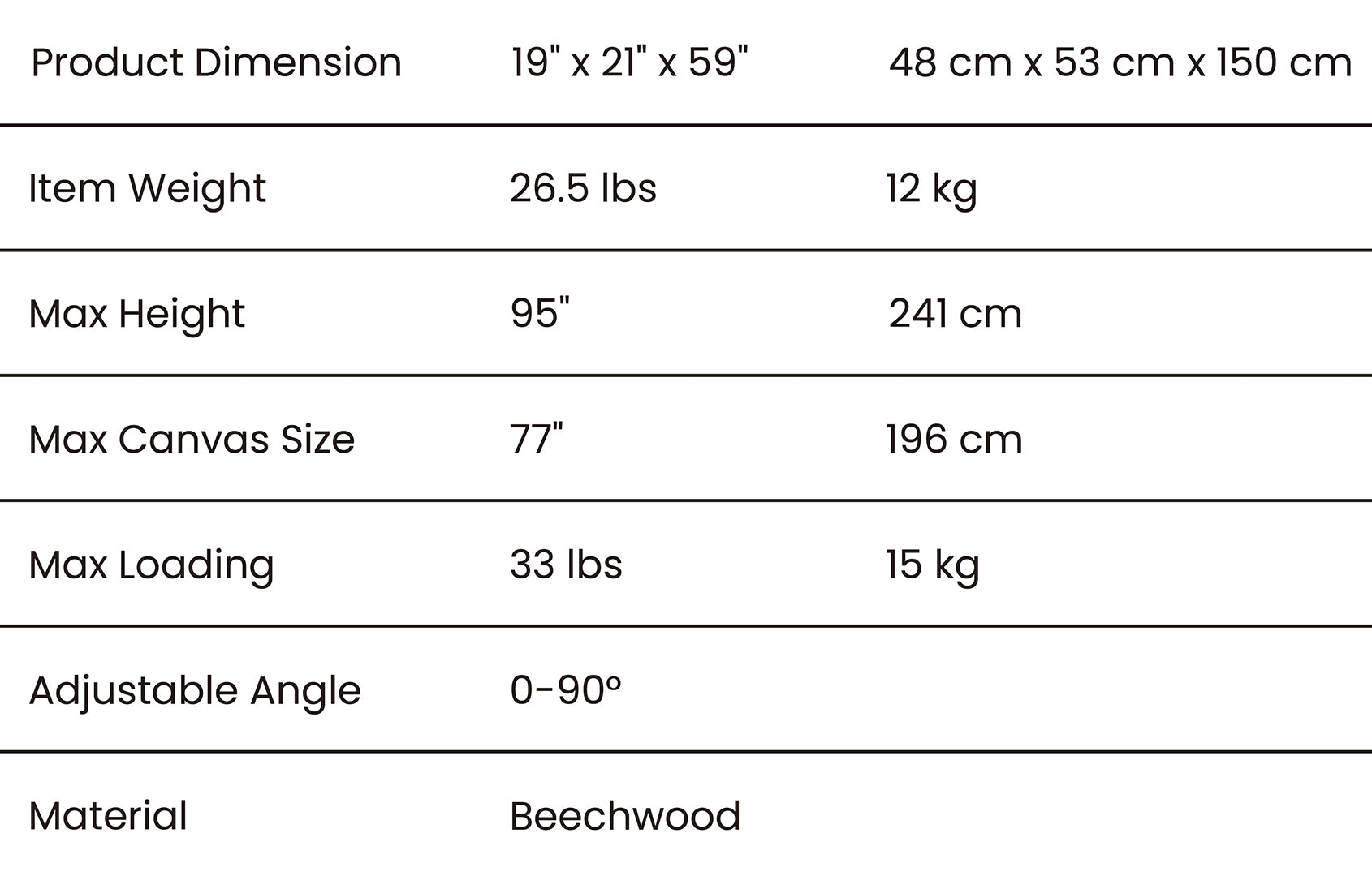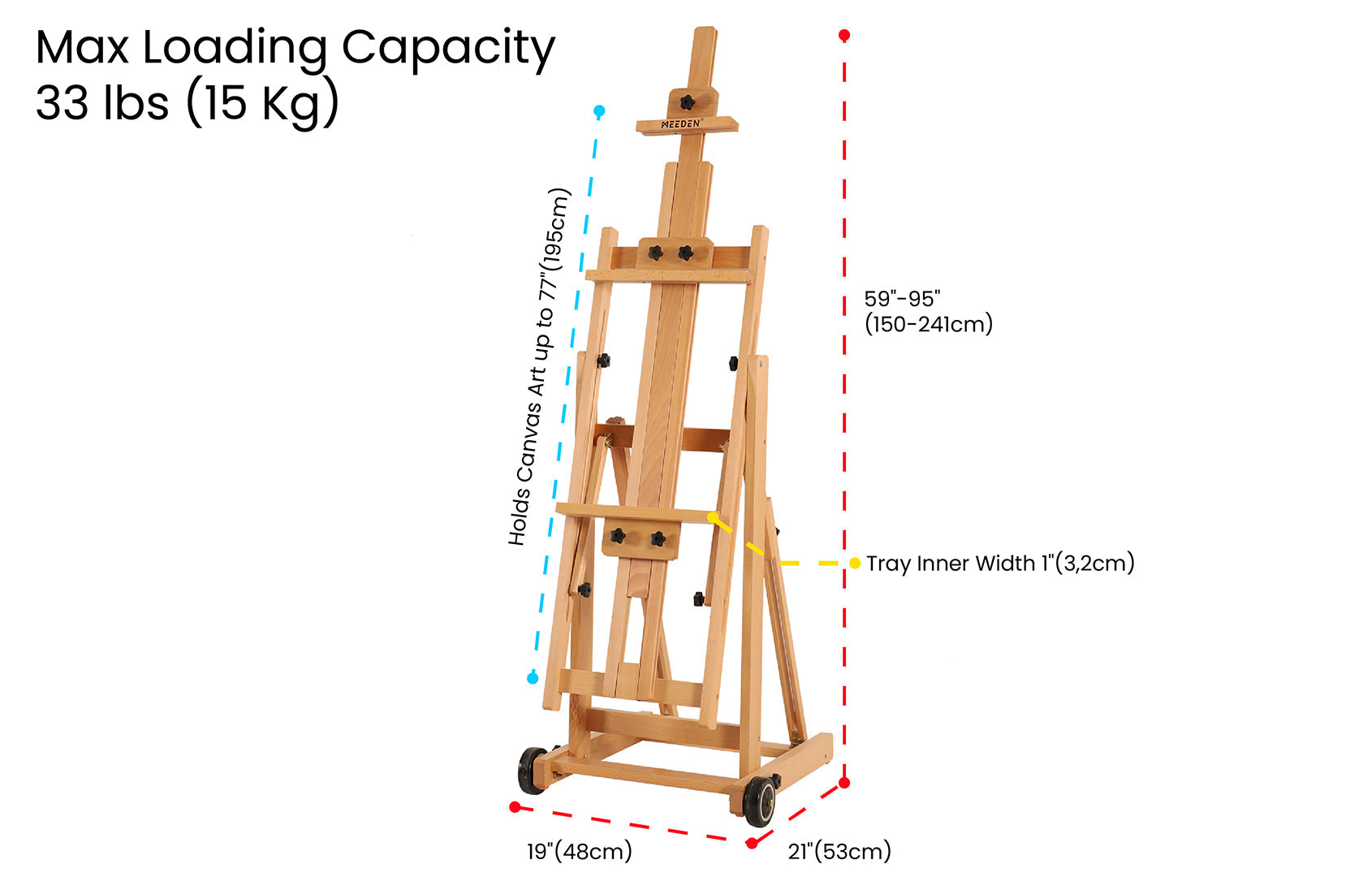 - Multi-Function H-Frame Easel: Constructed from solid beech wood, adjustable from 59" to 95", supports canvases up to 77".