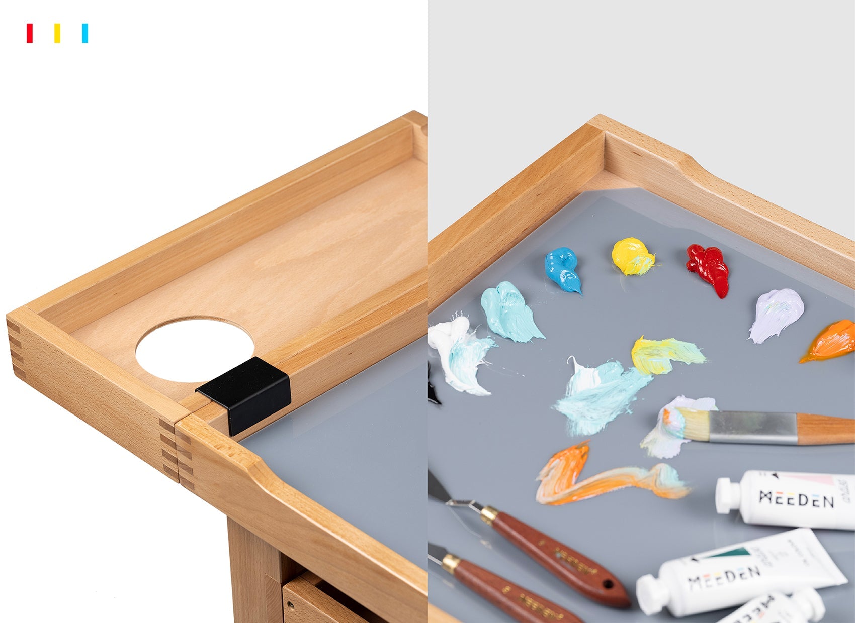 The three-tiered drawers are designed for effortless access, with smooth glides that make reaching your art supplies a breeze. Their spacious compartments provide ample room to store and organize your materials, ensuring a clutter-free workspace and enhancing your creative efficiency.