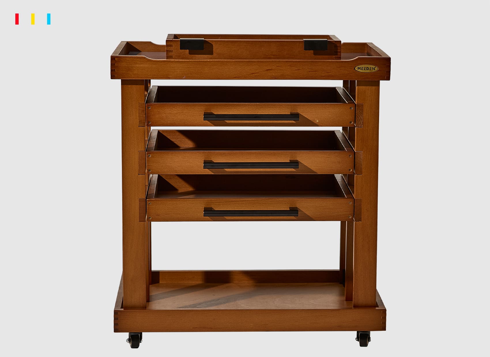 Constructed from durable, wear-resistant solid beech wood, the rolling storage cart offers exceptional stability and impressive load and volume capacity, ensuring long-lasting performance for years to come.