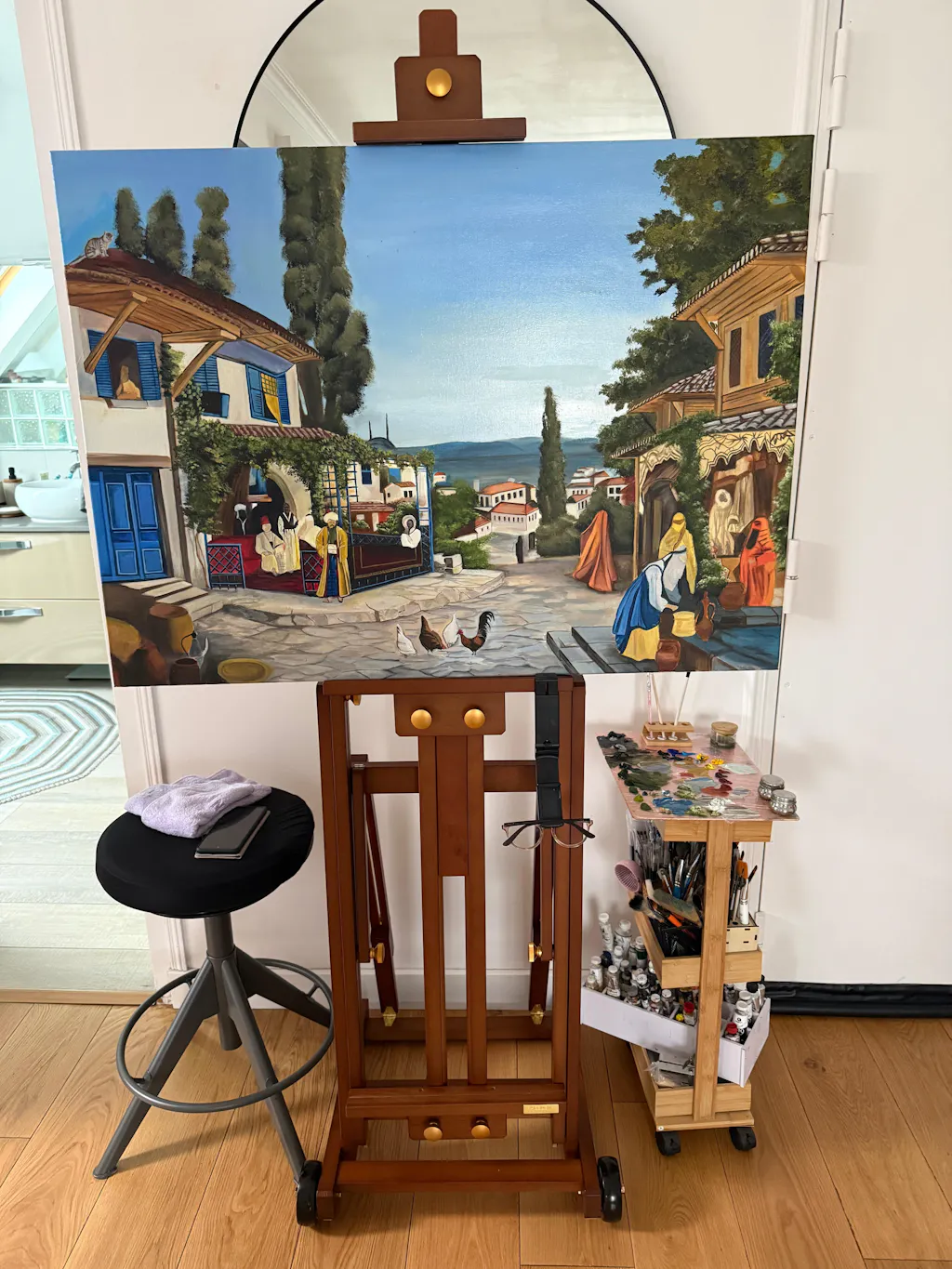 Suitable for painting on various sizes of canvas panels, with a maximum height of 77" (195cm), ensuring reliable support for both small canvases and large boards.