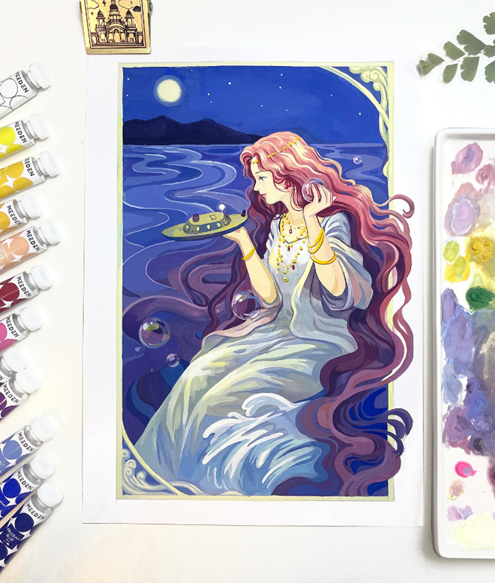 I‘m thrilled with how the MEEDEN Gouache Paint Set and Ceramic Tray Palette brought this vision to life. Their aesthetics and versatility are fantastic, and I highly recommend them!