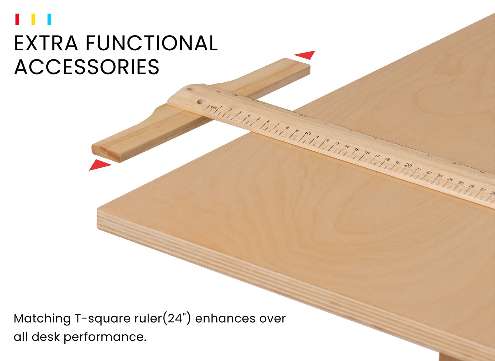 - Easy to Assemble: The table comes with clear instructions and a handy tool. All small parts are organized in separate bags to prevent loss. Assembly takes about 20 minutes with two people. It also includes a bonus 24-inch T-square with both inch and metric calibrations. We offer a satisfaction guarantee, so you can confidently try this versatile MEEDEN wood drafting table.